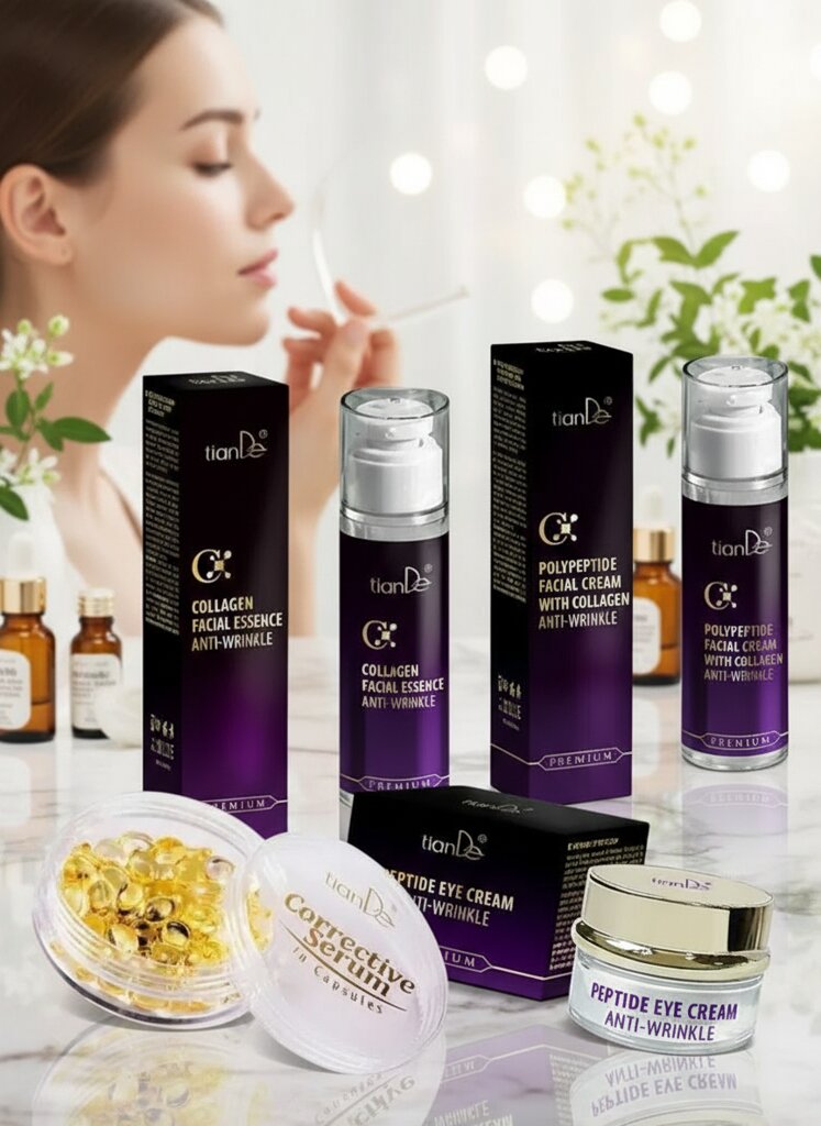 Exkluzívna darčeková sada prémiových produktov tianDe proti starnutiu pre komplexné omladenie pleti. Kombinácia peptidov a kolagénu účinne vyhladzuje vrásky, spevňuje kontúry tváre a intenzívne hydratuje. Štyri synergicky pôsobiace produkty zaručujú viditeľné výsledky už po niekoľkých týždňoch používania. Ideálny vianočný darček pre ženy, ktoré ocenia luxusnú starostlivosť inšpirovanú tradičnou čínskou medicínou a modernými technológiami.