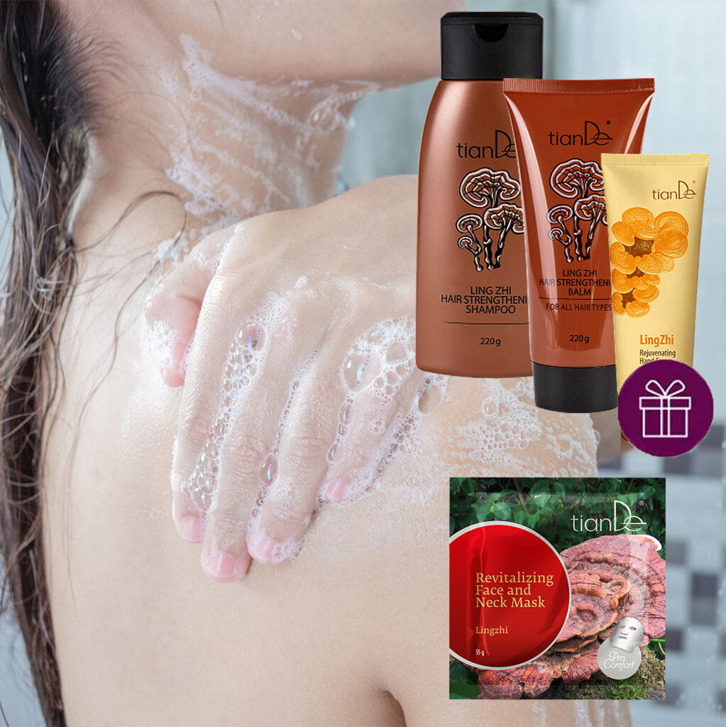 Prebuďte silu svojich vlasov a mladosť svojej pokožky ešte dnes! Objednajte si balenie s extraktom Lingzhi a získajte darček zadarmo. Doprajte si komplexnú starostlivosť inšpirovanú tradičnou čínskou medicínou a objavte svoju prirodzenú krásu s tianDe.