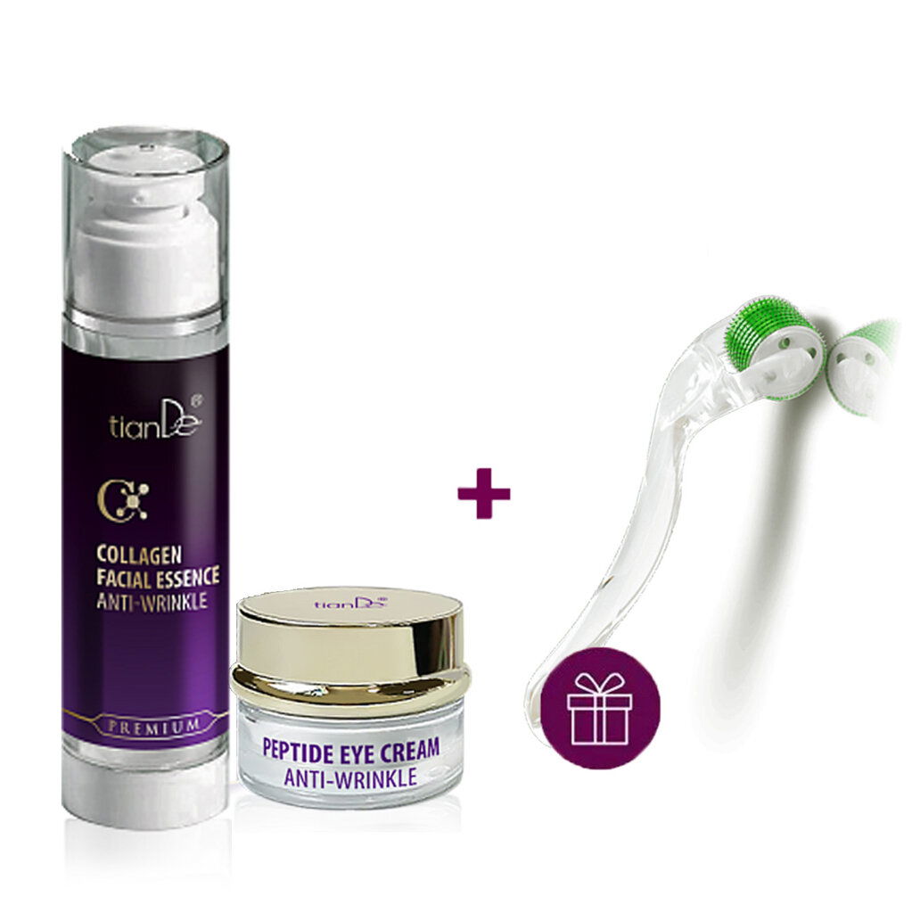 Luxusný omladzujúci balíček tianDe kombinuje silu kolagénu, peptidov a mikroihličkovej terapie na viditeľnú redukciu vrások. Špeciálne vytvorená kolekcia obsahuje kolagénovú esenciu na tvár, peptidový očný krém a ako darček profesionálny mezoroller, ktorý niekoľkonásobne zvyšuje účinnosť oboch produktov. Ideálne pre ženy 35+, ktoré túžia po viditeľnom omladení pleti bez invazívnych zákrokov.