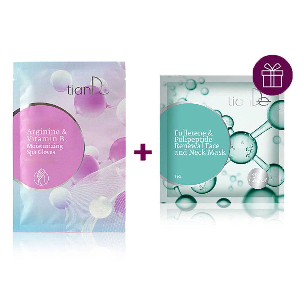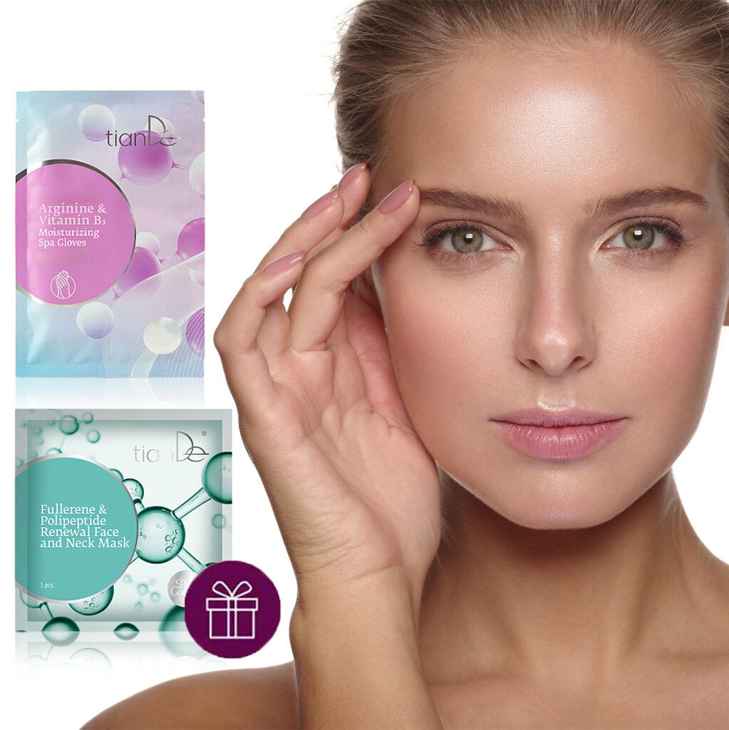 Doprajte si luxusnú kúpeľnú starostlivosť v pohodlí domova s týmto výhodným balíkom. Hydratačné kúpeľové rukavice s arginínom poskytnú vašim rukám intenzívnu regeneráciu, zatiaľ čo regeneračná maska s fullerénmi a polypeptidmi omladí tvár a krk. Ideálna kombinácia pre ženy, ktoré chcú komplexnú starostlivosť o pleť a pri kúpe rukavíc dostanú masku na tvár a krk ako darček.