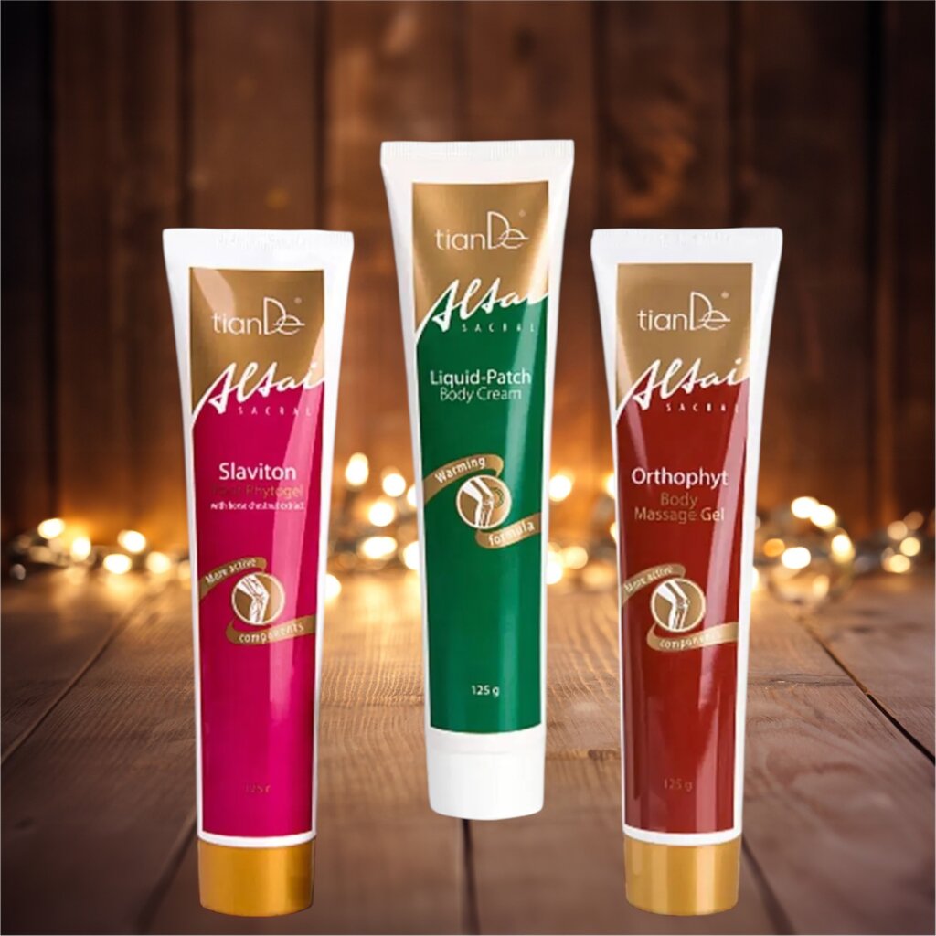 Komplexná sada troch prírodných produktov tianDe na okamžitú úľavu a regeneráciu svalov a kĺbov. Chladivý Slaviton fytogel, hrejivý Orthophyt a intenzívna tekutá náplasť spoločne poskytujú kompletnú starostlivosť pri únave, bolesti a preťažení pohybového aparátu. Ideálny vianočný darček pre aktívne ženy a mužov, ktorí hľadajú prírodné riešenie pre svoje unavené telo. Kombinácia tradičných bylinných receptúr z Altaja s modernými technológiami.