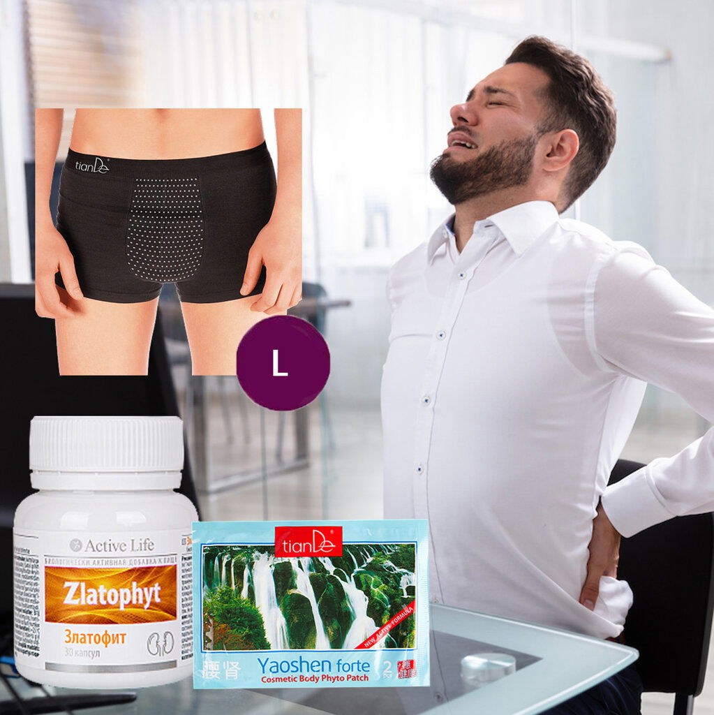 Komplexné riešenie na podporu zdravia obličiek a močových ciest s bonusom pre mužov. Balíček spája silu bylinného doplnku stravy Zlatophyt, účinného kozmetického fytonaplastu Yaoshen Forte a ako darček dostanete inovatívnu pánsku spodnú bielizeň s turmalínovým povrchom. Prírodná podpora optimálnej funkcie vylučovacieho systému a mužského zdravia v jednom balení.