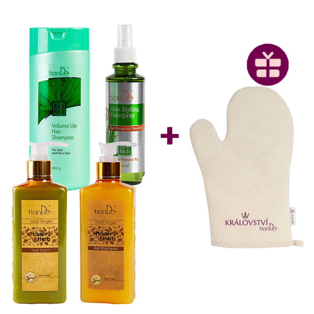 Objavte komplexnú starostlivosť o vlasy v jednom balení! Kombinácia zázvoru a aloe vera účinne rieši problémy s vypadávaním vlasov, nedostatkom objemu a pružnosti. Prírodné zložky aktivujú mikrocirkuláciu, vyživujú vlasové cibuľky a chránia pred poškodením. V balíčku získate kompletný systém starostlivosti od umývania až po styling a navyše praktický darček - kráľovský kotlík. Doprajte svojim vlasom silu prírody a viditeľnú premenu!